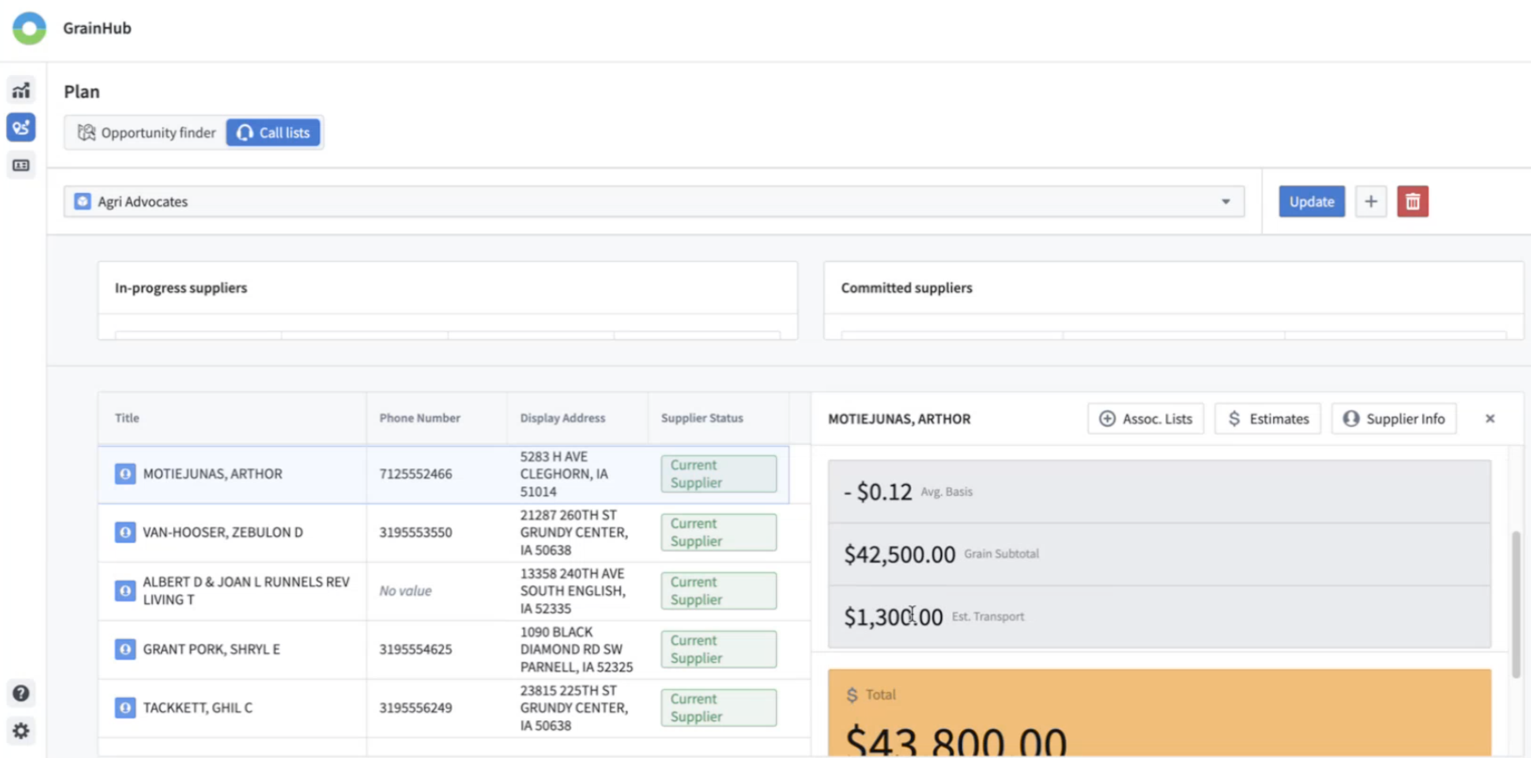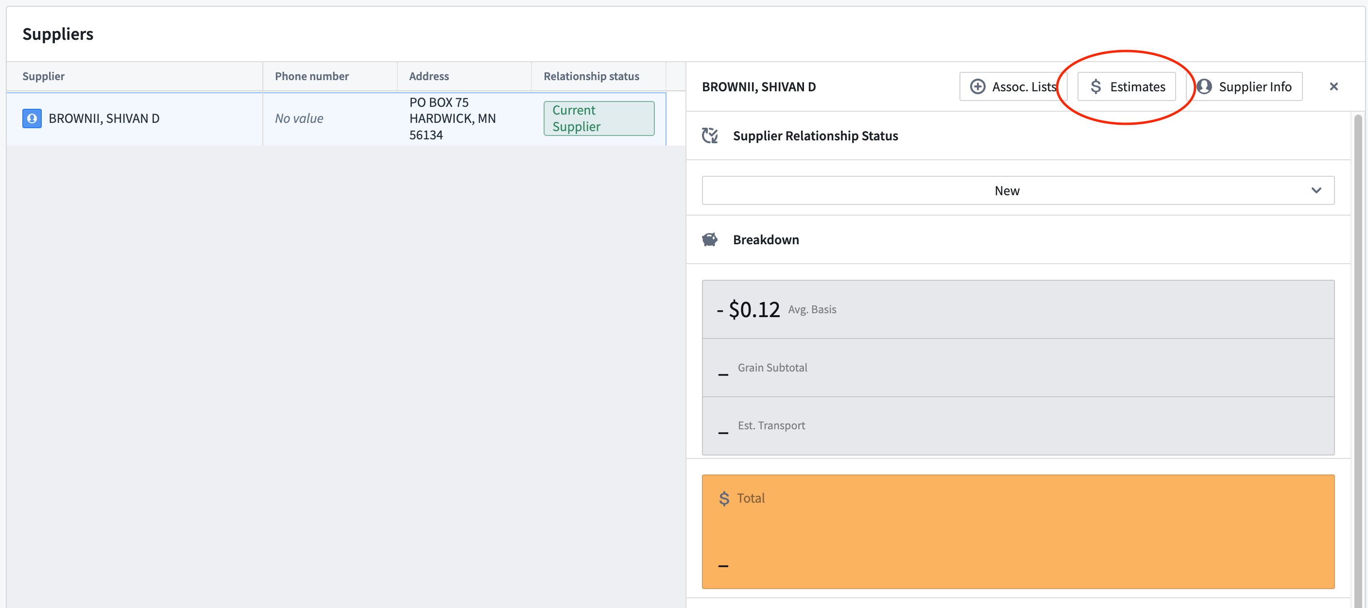 While still within a given supplier’s call list as shown above, create an estimate by clicking on the Estimates button.